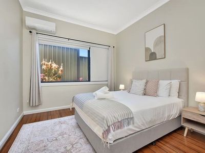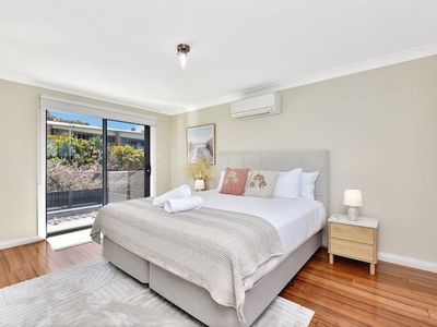 Wake to sparkling lake views, unwind on the sun-soaked deck, and enjoy effortless comfort in this beautifully designed modern retreat . Welcome to your relaxing lakeside, furnished, custom-built duplex that seamlessly blends contemporary design with homely charm. Overlooking the tranquil waters of Lake Macquarie, this light-filled home has stunning lake views from the living area and patio, polished timber floors, and thoughtful design details throughout, whether you’re enjoying a morning coffee as the sun rises or winding down with a glass of wine on the deck. Inside, the open-plan living area provides a welcoming space to relax, complete with a large TV, comfortable seating, and air conditioning for year-round comfort. The adjoining dining area seats eight, while the fully equipped kitchen offers everything needed, dishwasher, and coffee machine. Four beautifully styled bedrooms, the main bedroom enjoying air conditioning, a beautiful ensuite and a walk in robe, . Step outside to the private balcony and soak in uninterrupted views of Lake Macquarie, a serene setting on The Esplanade. King Bed and 3 x queen beds, 3 separate living areas. Grassed and paved rear courtyard. Air conditioned throughout/ Double Garage with internal access. Alarm system. Go to bqnre.com.au for a tenancy application.